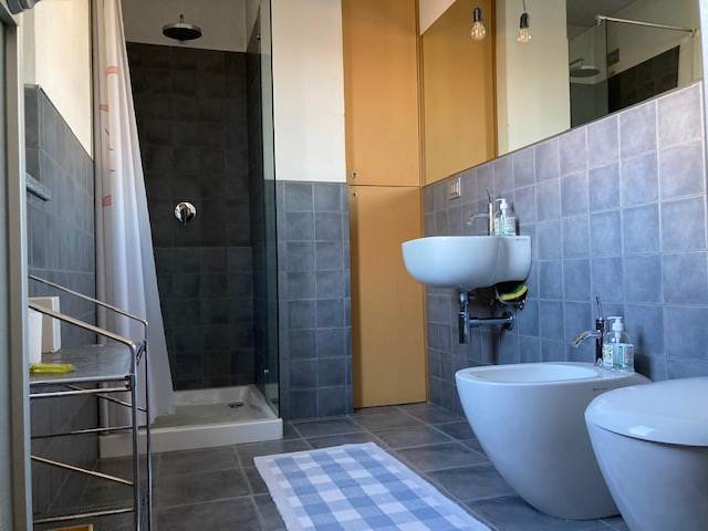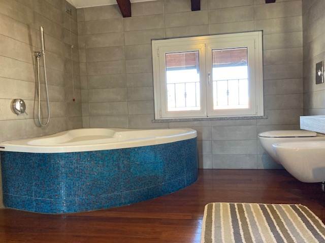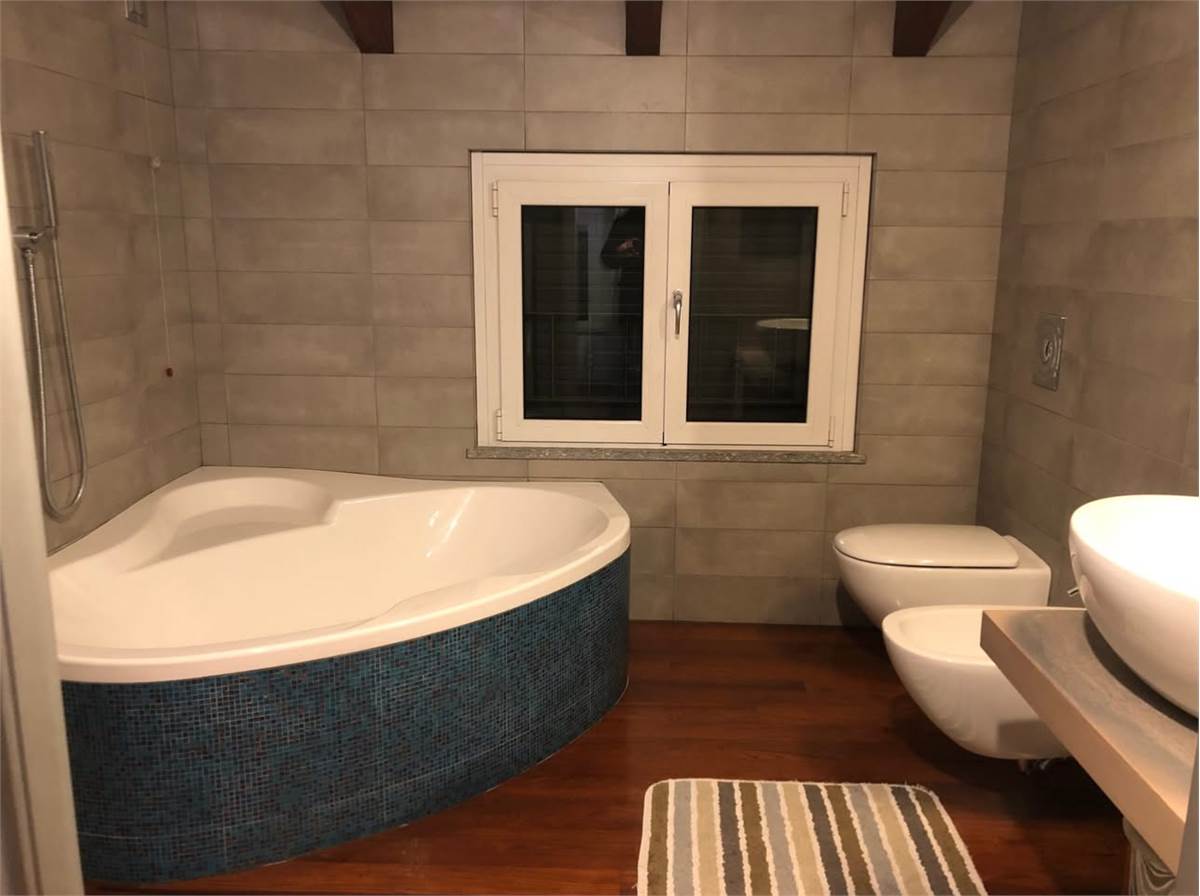 - sanitari Flaminia, rubinetteria Zucchetti, box doccia Vismara e Bisazza nel bagno padronale